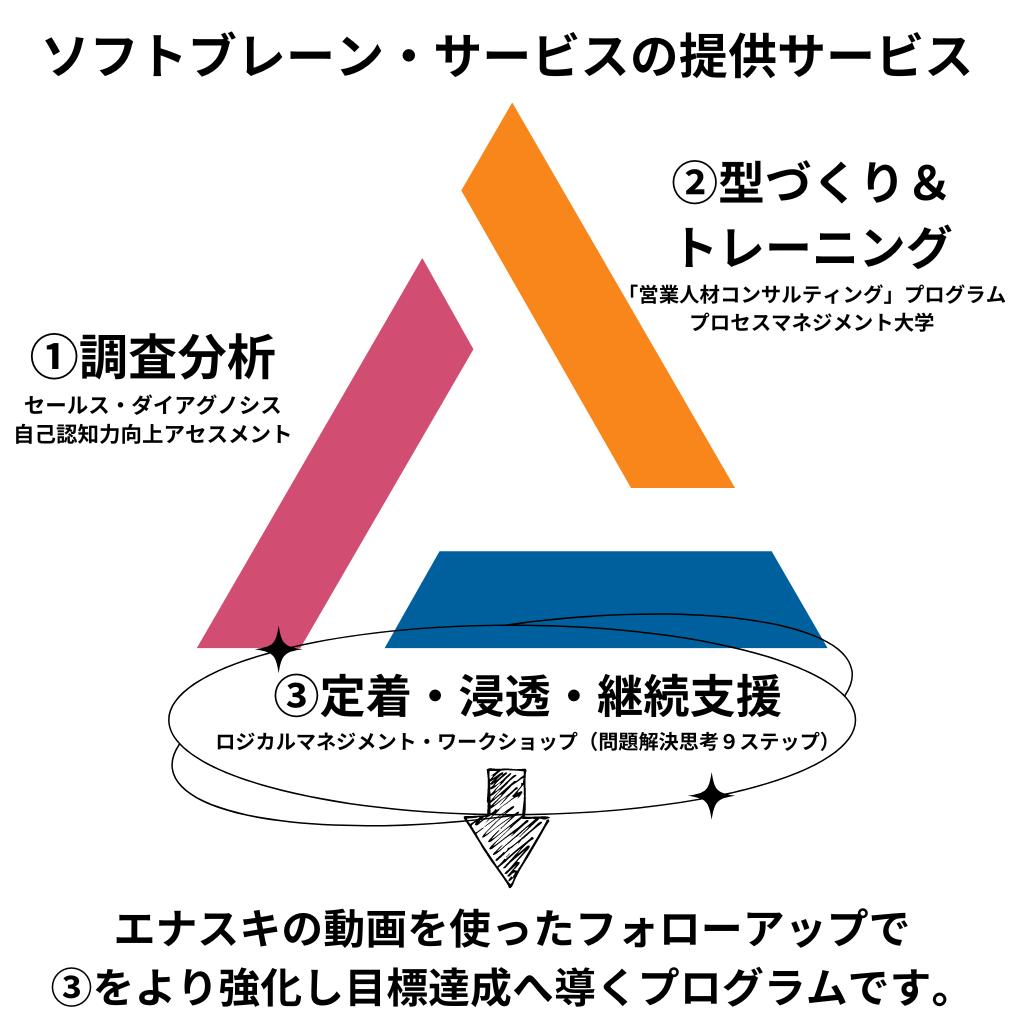 - ソフトブレーン・サービス株式会社(SBS)は、「営業プロセスマネジメント」のパイオニアで、国内30万人が実践。科学的組織営業への変革を目指す企業に対し、戦略から実行可能な戦術まで提供するコンサルティング会社。